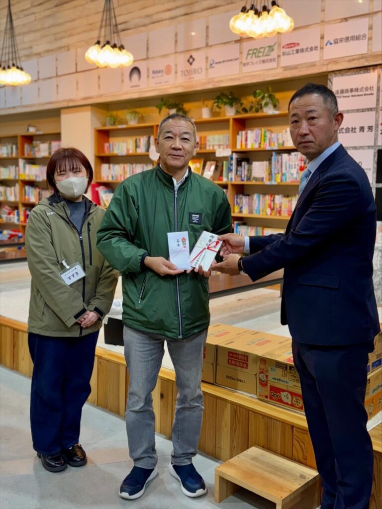 この度のご寄付は、白根ガス様が開催したイベントにおいて集まった募金と、併せて白根ガス様からの寄付金、並びに食品を賜りました。